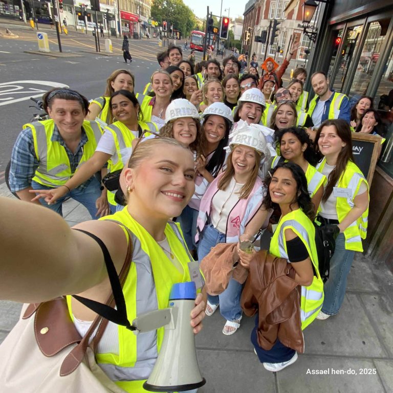 - Assael hen do – This summer we had four long standing Assaelians getting married including myself. To celebrate this whilst raising money for charity, the committee organised a construction themed bar crawl around Putney