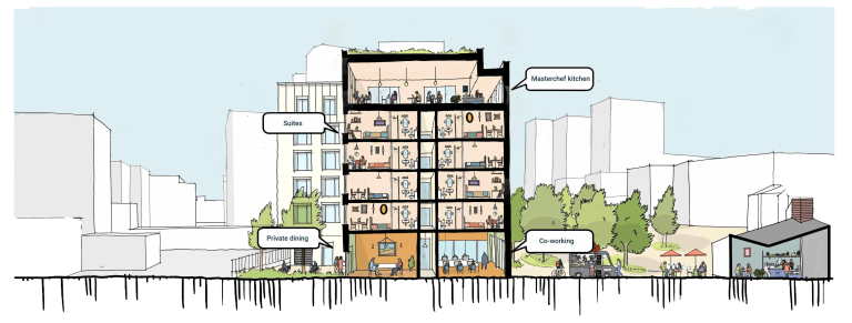 The 156 studio units are designed around a co-living model that combines private accommodation with extensive shared facilities. The scheme is positioned as part of a broader diversification of Woolwich’s housing offer, following significant regeneration in the area over the past decade.