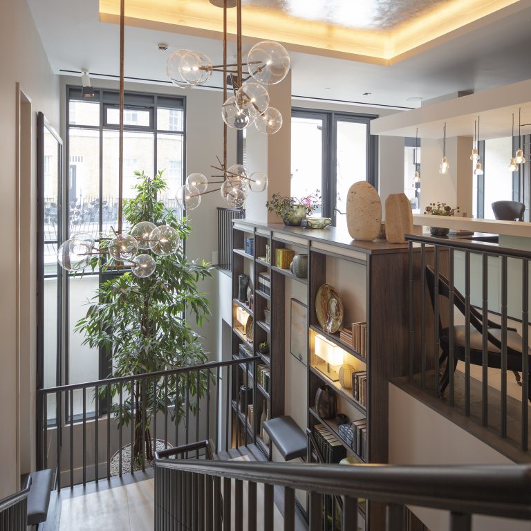 The 53 private apartments, penthouses and family mews houses are complemented by a residents’ gym, library and private cinema, all accessed via a double-volume entrance and feature staircase.